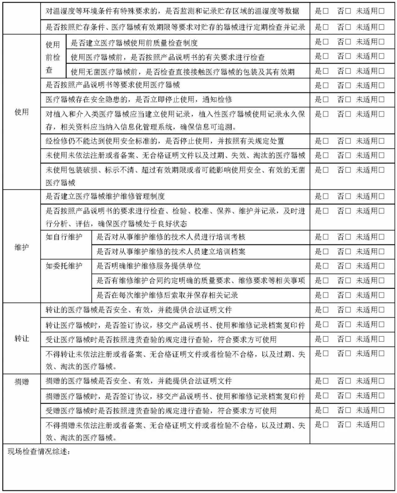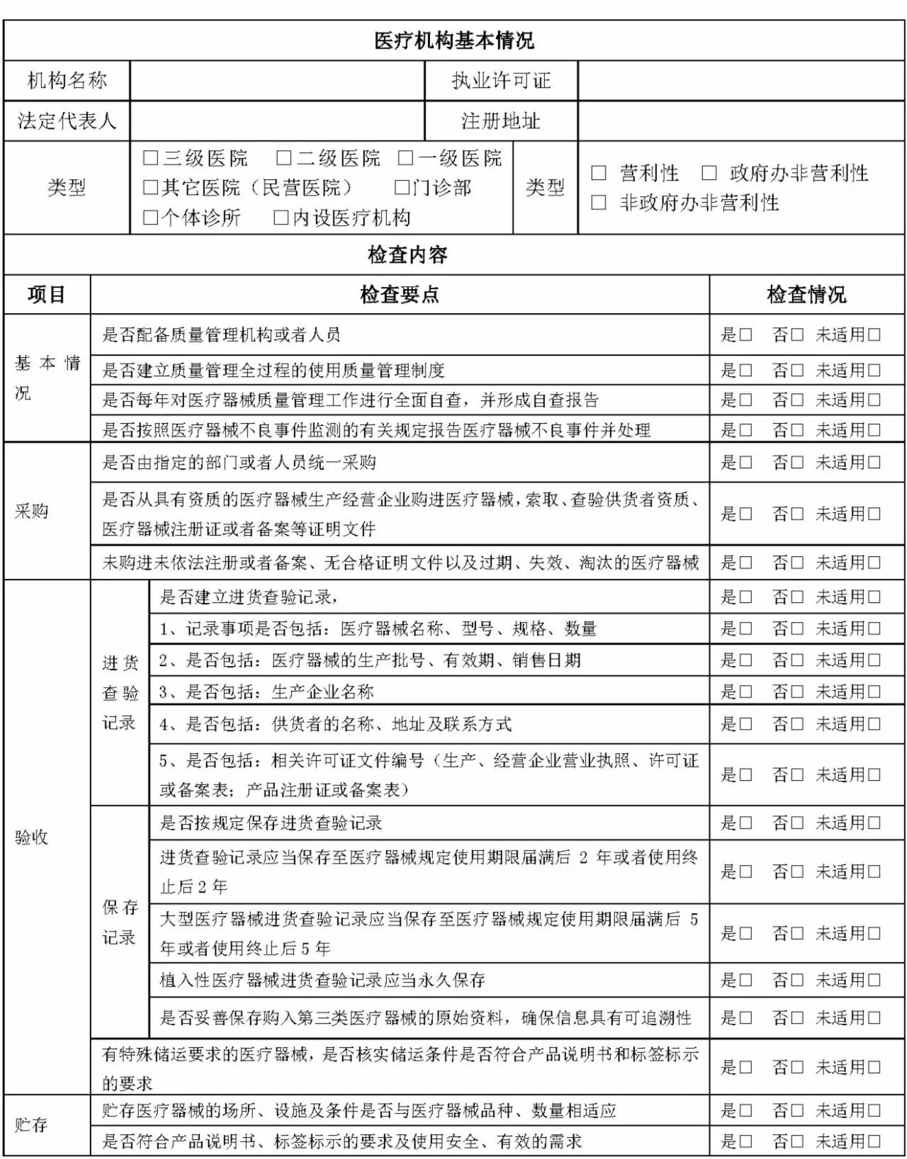 醫(yī)療機(jī)構(gòu)醫(yī)療器械監(jiān)督檢查表