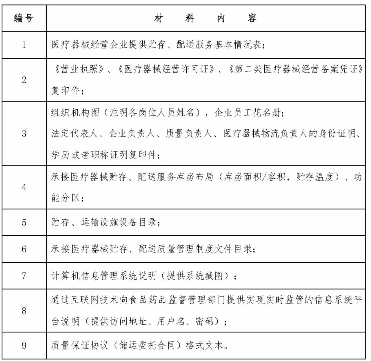 醫(yī)療器械經(jīng)營(yíng)企業(yè)提供貯存、配送服務(wù)申報(bào)材料目錄