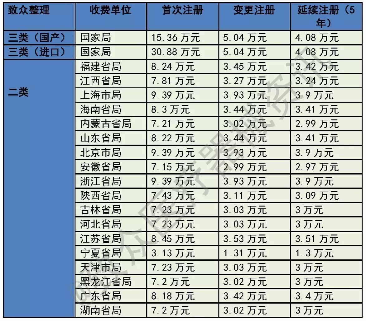 國內(nèi)各級藥監(jiān)局注冊費(fèi)用匯總表
