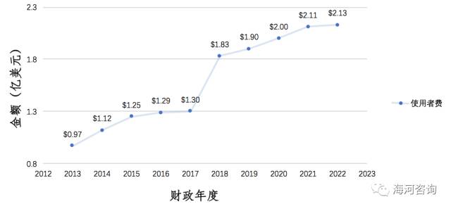 下圖為海河咨詢整理的由2013財(cái)政年度至2022財(cái)政年度醫(yī)療器械使用者費(fèi)的預(yù)算,從圖中可以看出2018財(cái)政年度是一個(gè)跨越式的上漲,在后續(xù)的5年內(nèi)還將持續(xù),但是漲幅會趨于平穩(wěn)。