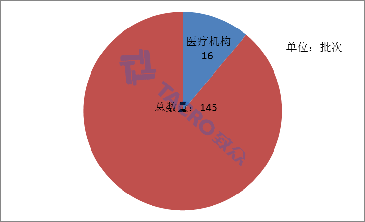 從被抽查單位的性質(zhì)上來(lái)看,在這145批次產(chǎn)品中,有16批次產(chǎn)品抽檢于醫(yī)療機(jī)構(gòu)(見圖四)。