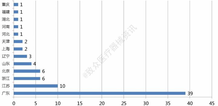 按照抽檢單位地區(qū)劃分,77批不合格產品地區(qū)分布如圖一所示,圖中可看到,廣東省被抽查到不合格的電子血壓計產品數量多達39批,占所有不合格產品的一半,遙遙領先于有10批不合格產品的江蘇省。