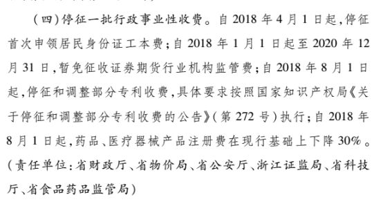 10月17日,浙江省人民政府辦公廳下發(fā)了《浙江省人民政府辦公廳關(guān)于進(jìn)一步減輕企業(yè)負(fù)擔(dān)增強(qiáng)企業(yè)競(jìng)爭(zhēng)力的若干意見》,該文件第四條關(guān)于停征一批行政事業(yè)性收費(fèi)這一項(xiàng)里,從2018年8月1日起,藥品、醫(yī)療器械產(chǎn)品注冊(cè)費(fèi)在現(xiàn)行基礎(chǔ)上下降30%,對(duì)于8月1日已經(jīng)按原來行政費(fèi)收取的企業(yè)退費(fèi)問題等與財(cái)政部門商量后再處理,具體細(xì)節(jié)要等待相關(guān)部門的細(xì)則發(fā)布。
