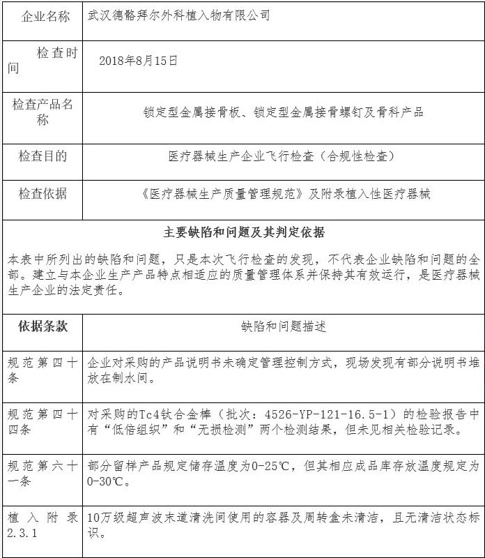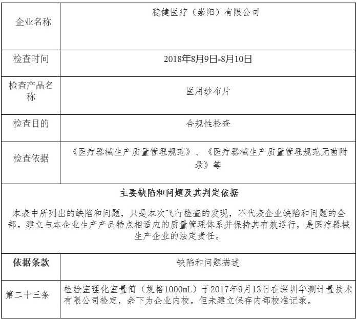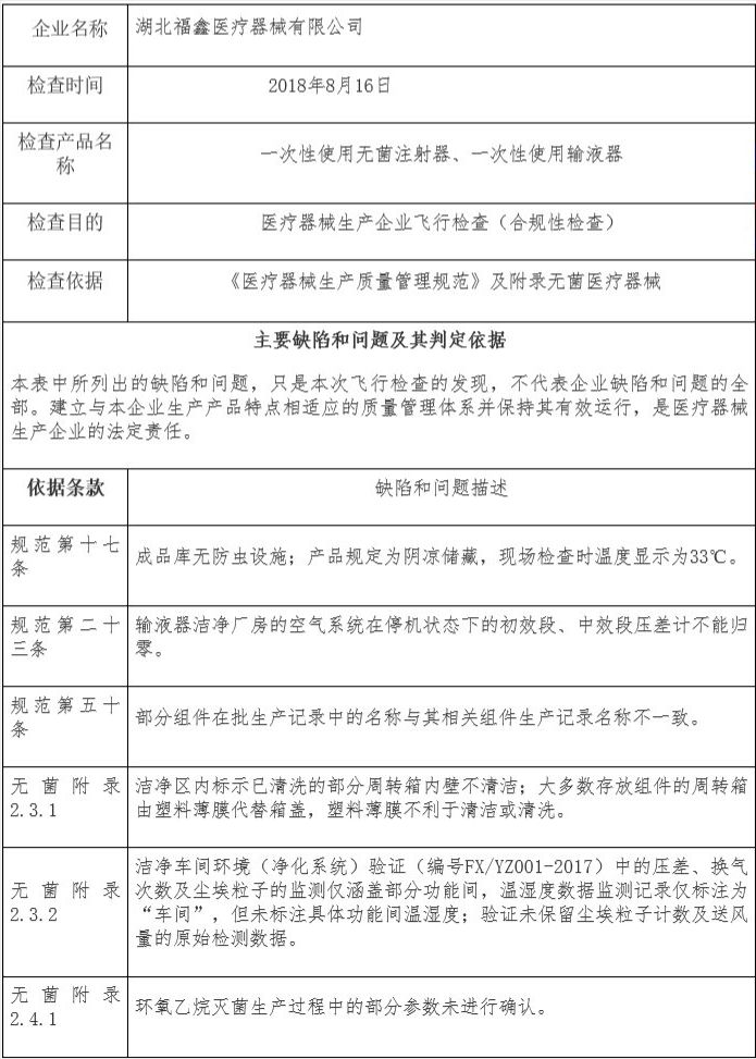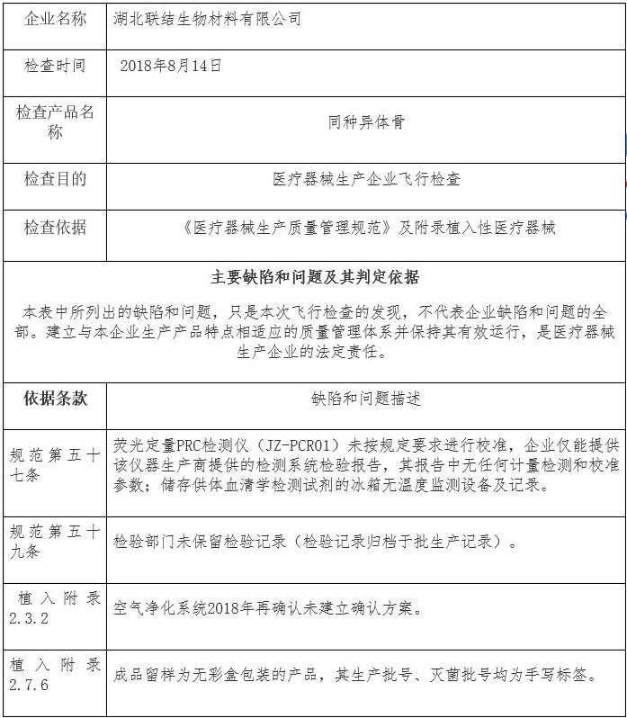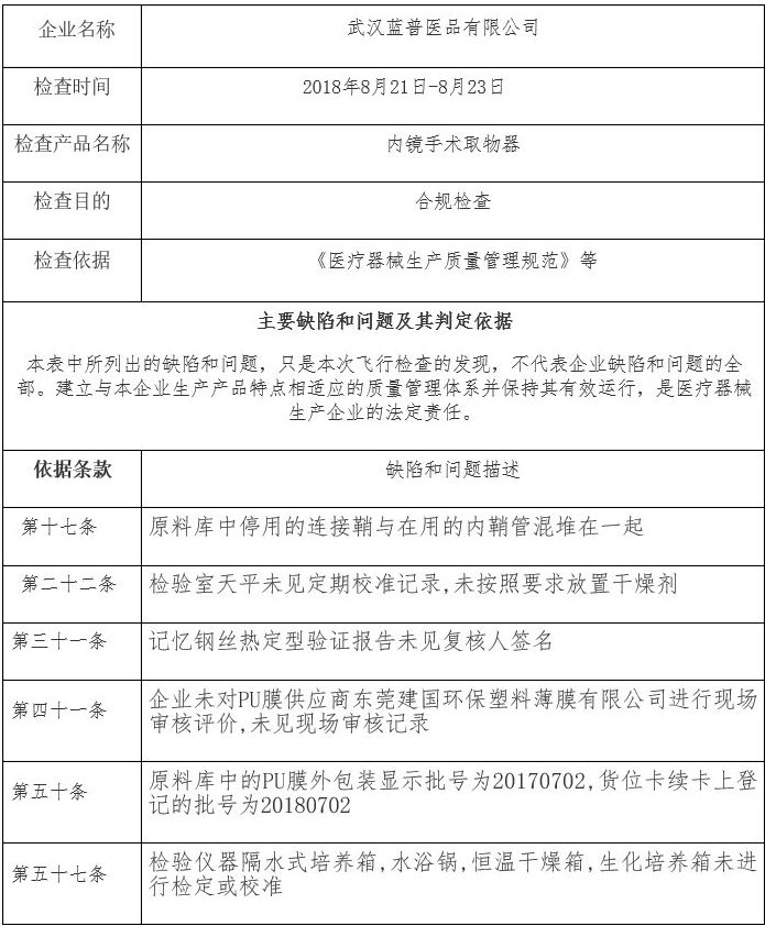 根據(jù)《藥品醫(yī)療器械飛行檢查辦法》(國家食品藥品監(jiān)督管理總局令第14號)要求,省食品藥品監(jiān)督管理局組織開展了2018年度醫(yī)療器械生產企業(yè)飛行檢查?,F(xiàn)場檢查發(fā)現(xiàn)泰科博曼(湖北)醫(yī)療技術有限公司已停產,省食品藥品監(jiān)督管理局已要求宜昌市食品藥品監(jiān)督管理局加強對該企業(yè)的監(jiān)管,該企業(yè)恢復生產前應當按照有關規(guī)定書面報告宜昌市食品藥品監(jiān)督管理局,經(jīng)該局核查符合要求后方可恢復生產。
