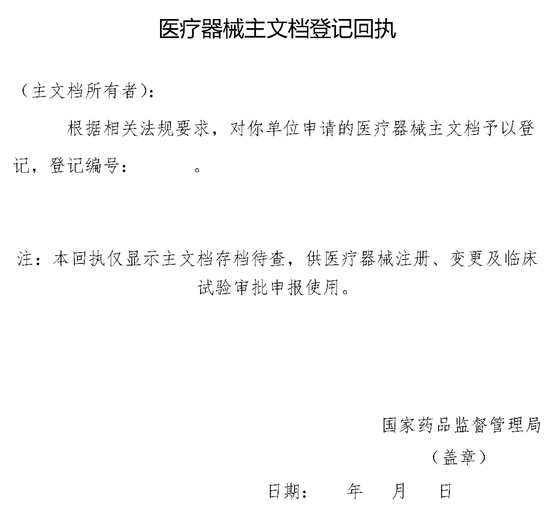 3.醫(yī)療器械主文檔登記回執(zhí)