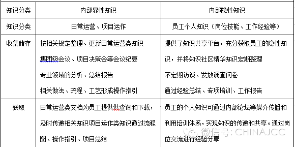 知識管理是知識內容、知識活動及知識價值的平衡,知識內容說明知識管理主要是對各種來源、各種類型的知識內容進行管理,知識活動則強調知識管理不僅僅是技術相關性問題,在機制上是“人、流程、技術”三者的有機統(tǒng)一,而其核心活動是知識過程,即知識的產生、分享、應用以及創(chuàng)新,知識價值強調知識管理需要特定價值,如業(yè)務目標和績效的實現等,知識管理應基于知識內容、通過知識活動、創(chuàng)造知識價值。從知識管理的搜集和準備上,應對企業(yè)的顯性知識和隱性知識進行搜集。顯性知識指內容清晰明確,易于通過圖文表述,便于整理、儲存、編碼以及傳播的知識資源,如經過濾及總結所獲得的資訊情報、方法技能、原則原理、規(guī)律規(guī)則、工程的業(yè)績、人員簡歷、證書等。而隱性知識是指在個人頭腦或機構文化中隱含的,內容較為個人化、主觀化和經驗化,難以用書面形式表述的知識資源;如經驗、構思、洞察力、判斷力、機構文化下的行為模式等。