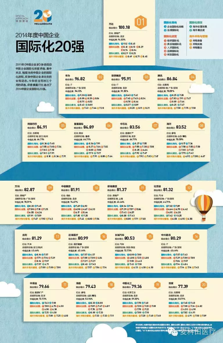 一些新面孔值得推介,醫(yī)療健康領域的邁瑞醫(yī)療首次入榜,中歐國際工商學院麥克羅(Klaus E. Meyer)教授認為,邁瑞是醫(yī)療器械領域專注于“利基戰(zhàn)略”的世界領導者。2008年,邁瑞醫(yī)療以2.01億美元收購美國Datascope公司生命信息監(jiān)護業(yè)務,這項收購當時被稱為“醫(yī)療器械行業(yè)的聯想收購IBM全球PC業(yè)務案”,2013年,邁瑞成功打出第二桿,一舉拿下美國超聲診斷排名第五的ZONARE公司,進入移動彩超領域。邁瑞的國際化體現了中國國際化進程的多元化和豐富性。