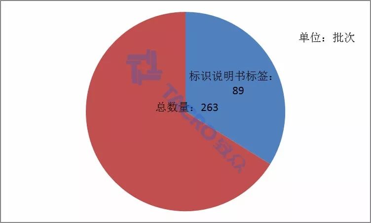 從不符合項的類別來看,產(chǎn)品最突出的缺陷就是標(biāo)識標(biāo)簽說明書一類。263批產(chǎn)品中,在標(biāo)識標(biāo)簽說明書方面存在缺陷的就涉及89批,占比34%。(見圖三)