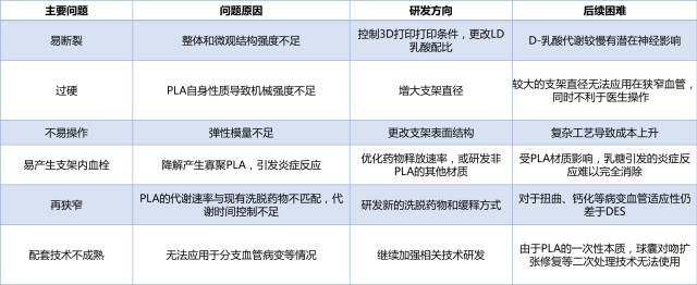 值得注意的是,可降解PLA路線本身有諸多問(wèn)題。PLA(polylactic acid)是聚乳酸的簡(jiǎn)寫,在生物醫(yī)學(xué)工程上已被應(yīng)用于手術(shù)縫合線、骨釘、骨板等領(lǐng)域。PLA在人體內(nèi)可逐步降解為可溶性的乳酸,經(jīng)過(guò)半年到兩年左右降解完畢。但機(jī)械強(qiáng)度、代謝產(chǎn)物等問(wèn)題一直困擾PLA可吸收支架。