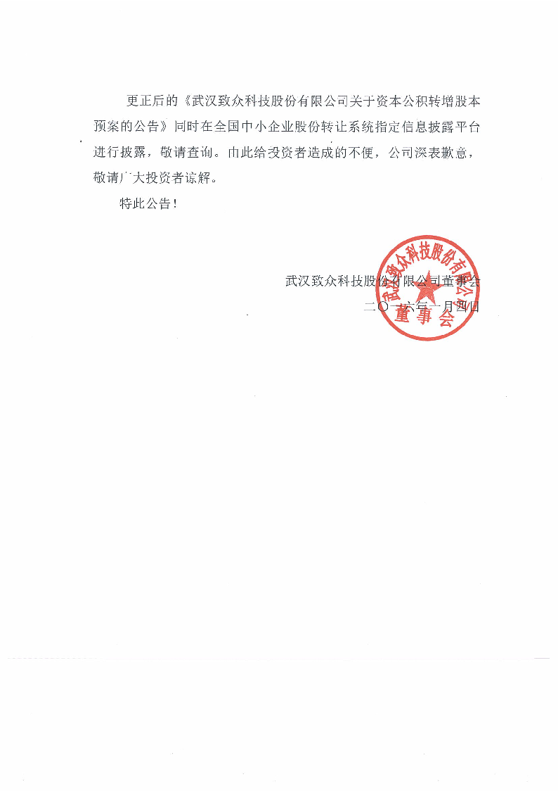 上一篇:致眾科技:關(guān)于資本公積轉(zhuǎn)增股本預(yù)案的公告(更正后)