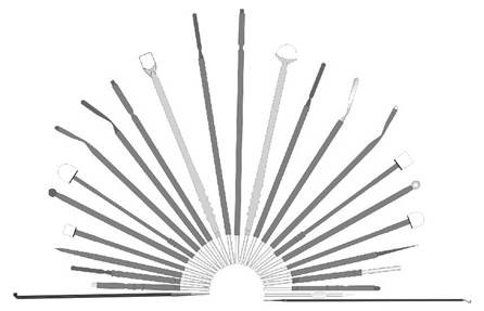 單極手術(shù)電極因在手術(shù)過程中的使用部位不同,基于各種手術(shù)需求的不同,其刀頭具有各種不同的形狀(見圖5)。