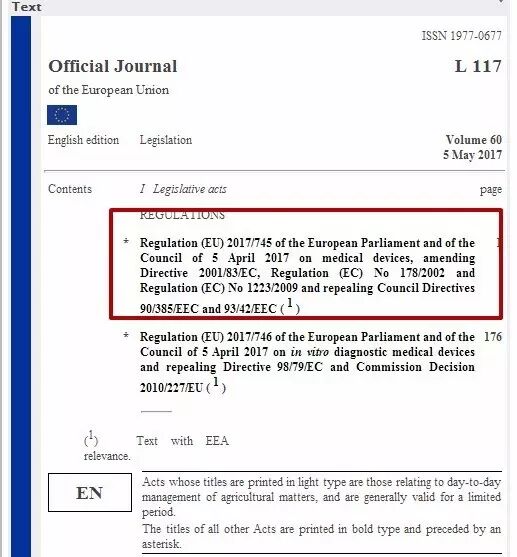 新的法規(guī)號碼是EU 2017/745 for MDR and EU 2017/746 for IVDR.