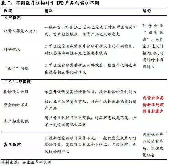 在進(jìn)口替代的進(jìn)程中,應(yīng)先分析終端的需求情況,以找準(zhǔn)定位,獲得收益。醫(yī)院在選用儀器的時(shí)候,主要有技術(shù)偏好和價(jià)格偏好,不同級(jí)別的醫(yī)院考慮的優(yōu)先度會(huì)有所不同,所以對(duì)其分類討論以找準(zhǔn)市場至關(guān)重要。