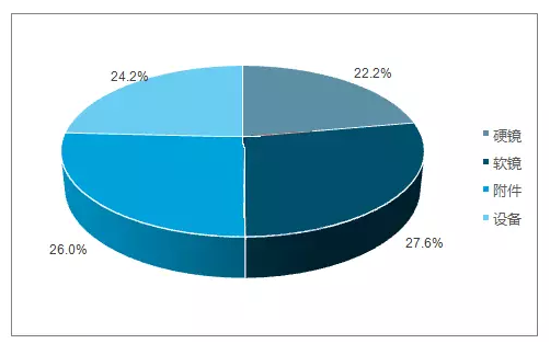 2015年全球內(nèi)窺鏡市場已經(jīng)達(dá)到了302億美元,2011-2015年復(fù)合增長率為7.17%,未來隨著醫(yī)療意識的提高和應(yīng)用場景的擴(kuò)展,2016-2019年預(yù)計(jì)年復(fù)合增長率提高至7.72%。受技術(shù)提升及使用便捷等因素影響,軟性內(nèi)窺鏡(消化內(nèi)鏡、支氣管鏡、耳鼻喉鏡等)占最大份額27.6%。內(nèi)窺鏡配件新品的不斷推出進(jìn)一步推動(dòng)了市場的增長,占比26.0%。2015年全球軟鏡市場規(guī)模為82.4億美元。2011-2015年復(fù)合增長率為8.85%,高于內(nèi)窺鏡行業(yè)平均水平,2016-2019預(yù)計(jì)年復(fù)合增長率還將提高至9.04%,未來軟鏡在內(nèi)窺鏡行業(yè)的占比還將進(jìn)一步提高。